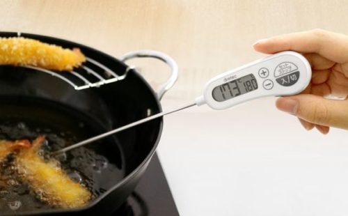 食品などの液体物・個体物に中心温度計の先端の棒を刺して温度を計るタイプと温度センサーのタイプの2種類あります。